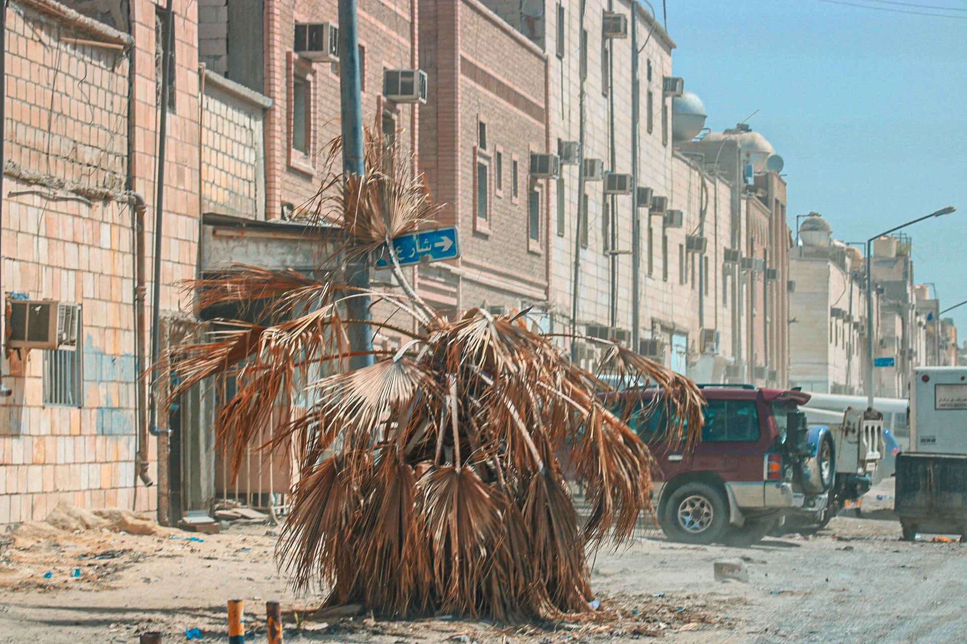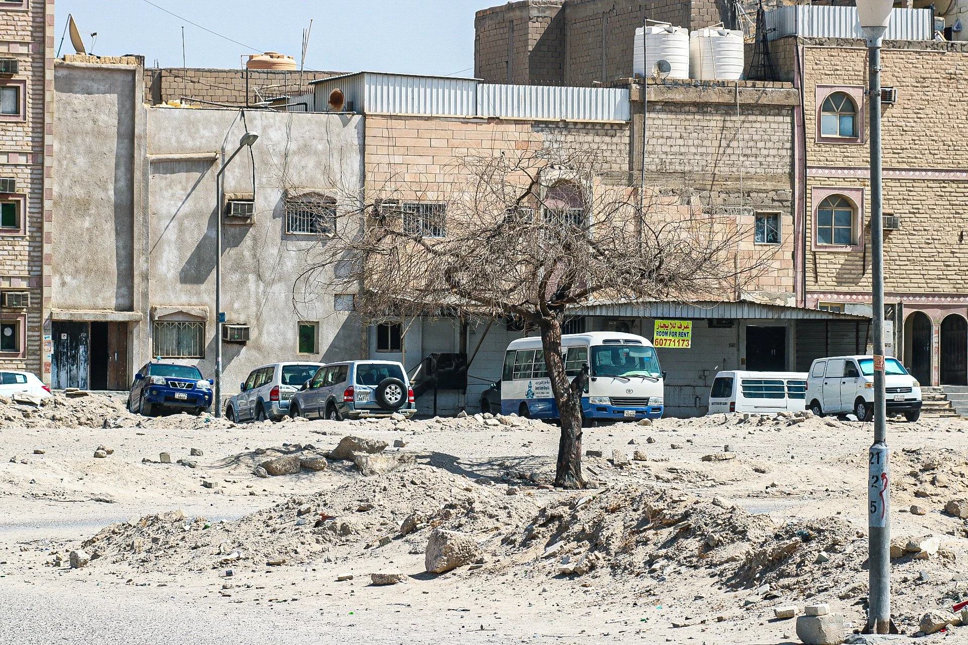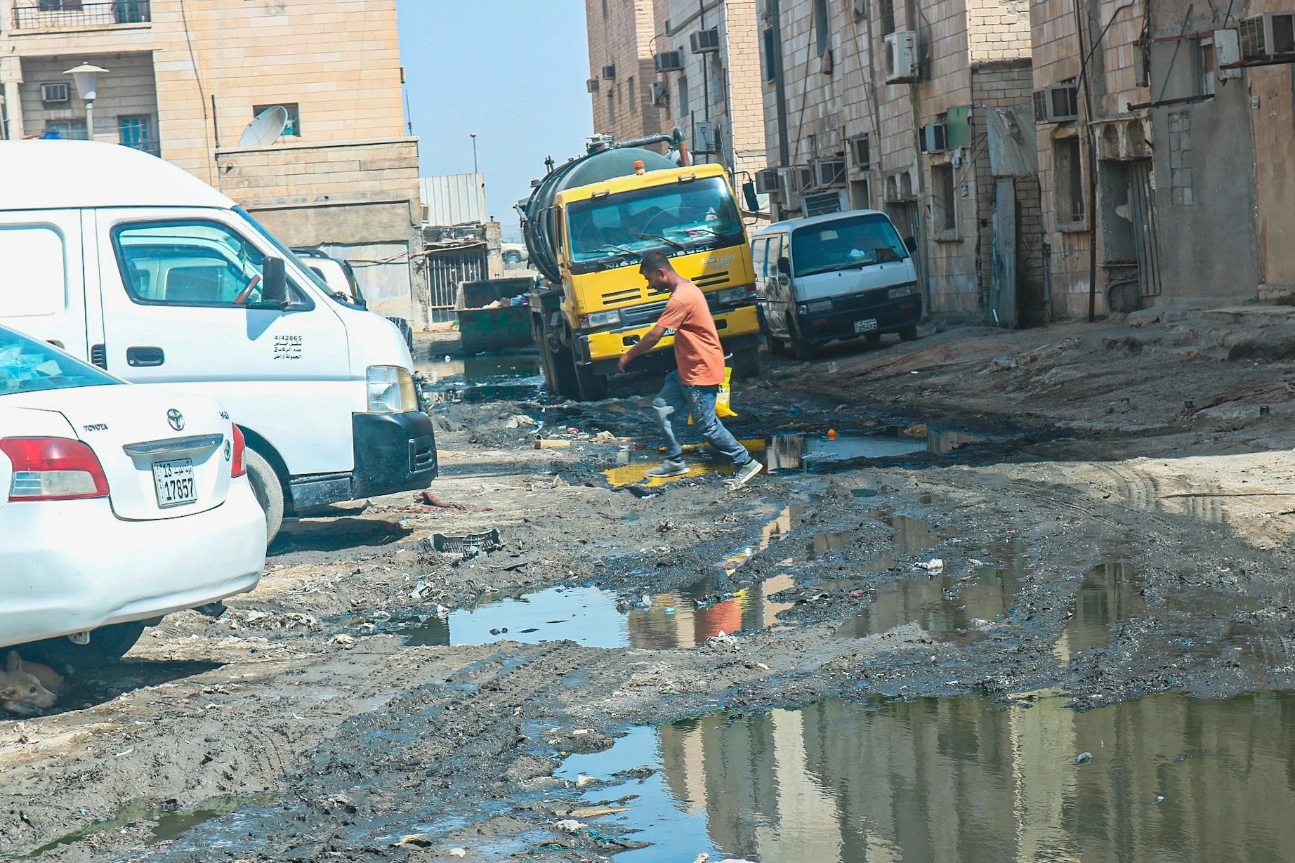 In areas where infrastructure is under-developed and under maintained, flooding is a common occurrence in the winter months. In the aftermath of rainstorms, broken sidewalks and shattered pavement are the most common sight on Kuwaiti roads. Millions of sandbags, used to build flood walls, litter the main thoroughfares, backstreets and sides of buildings as if part of a failed defense against a relentless invader.