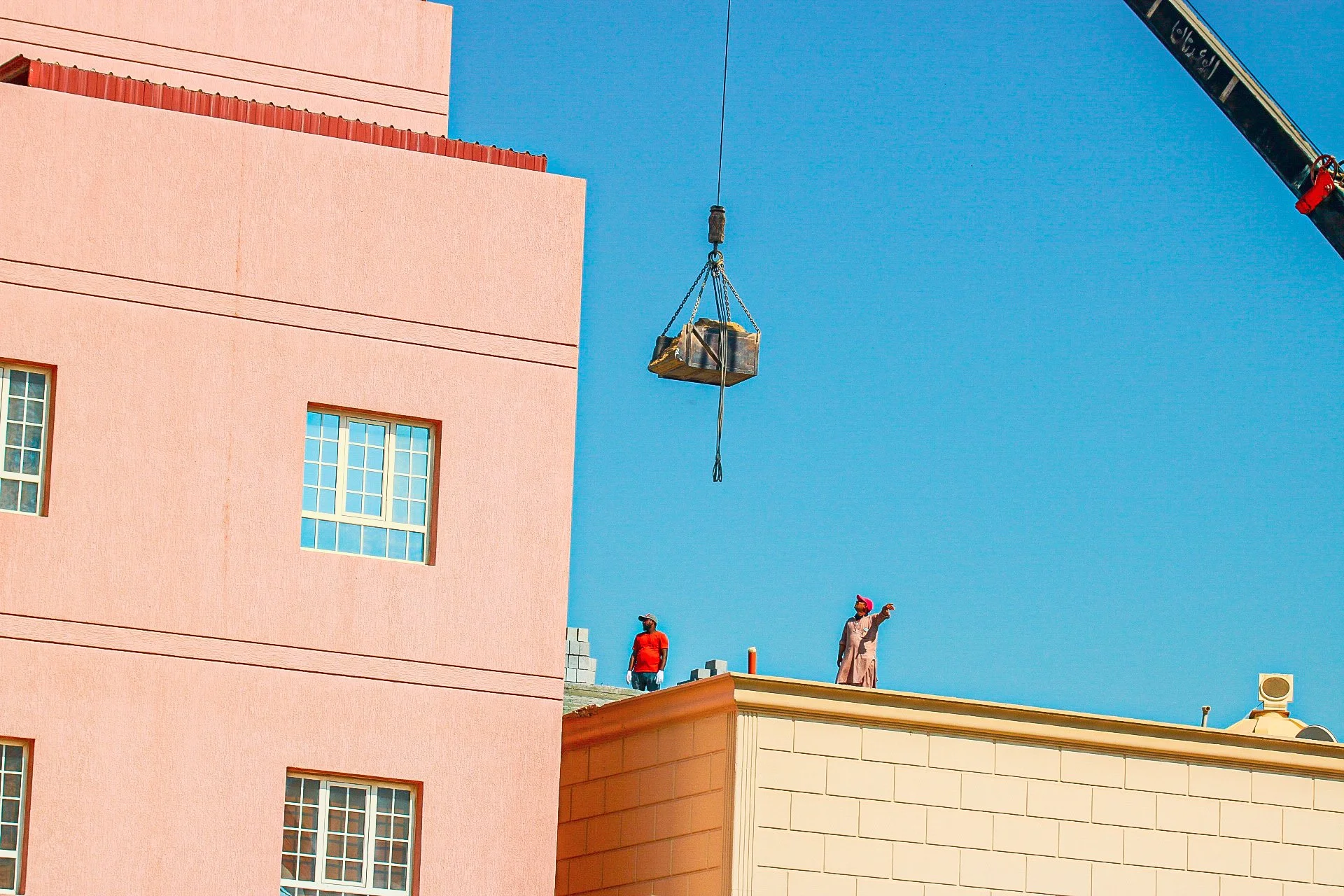Image 28: Working on a villa roof in 50C. Construction labourers rarely wear protective equipment while working in dangerous conditions and extreme temperatures. Workplace accidents are frequent, Salmiya