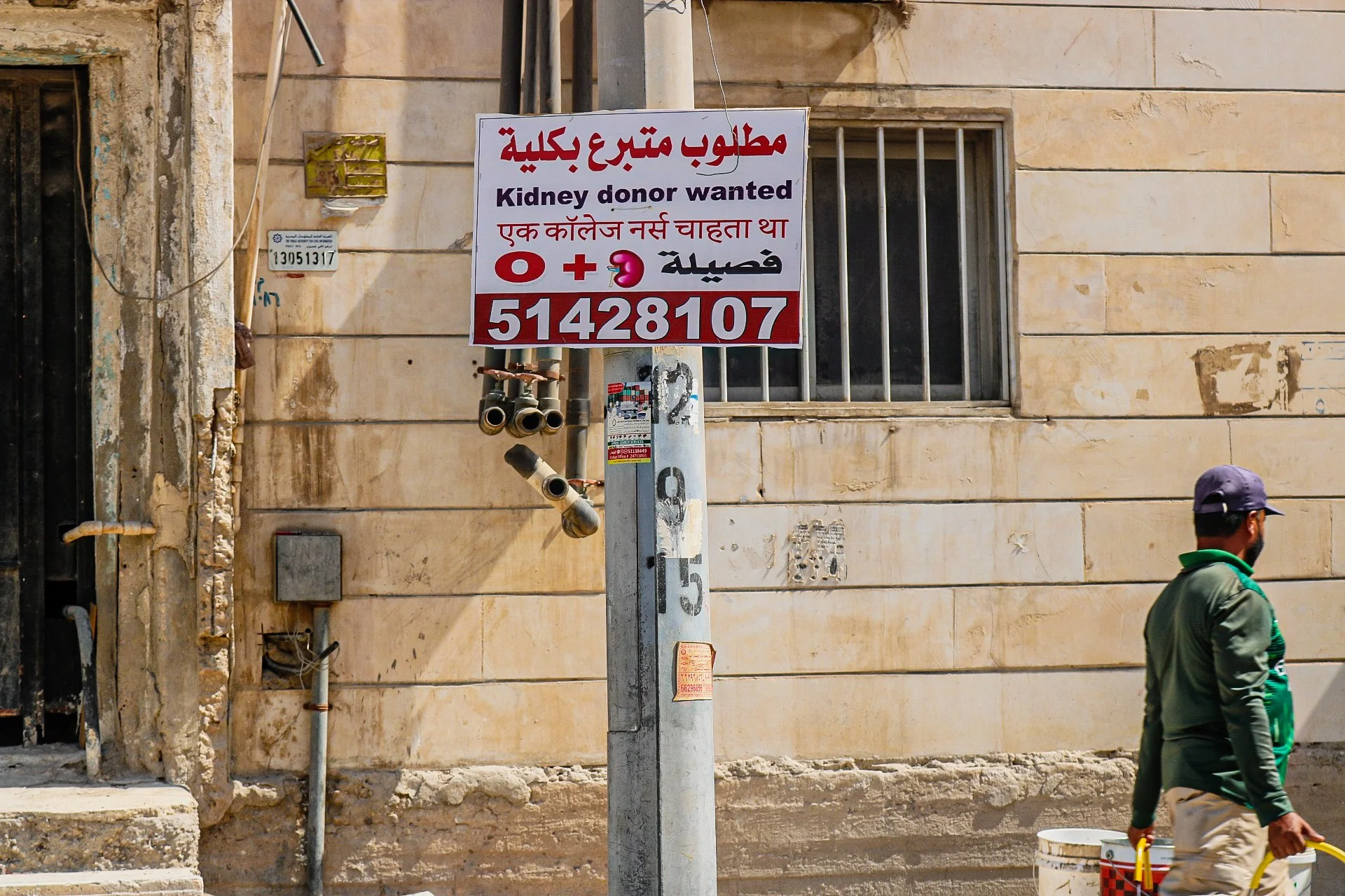 Image 16: Kidney donation sign. It is illegal to advertise for organ donations, although it is very common in Kuwait, Jleeb Al-Shuyoukh
