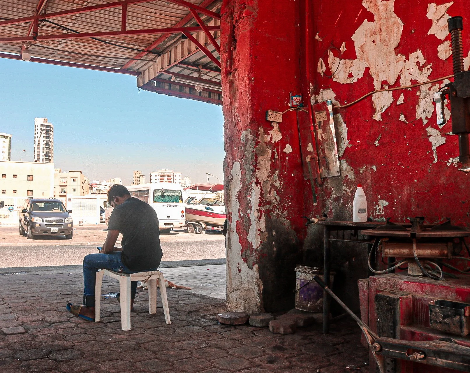 Image 25: Waiting for a customer at an autoshop, Salmiya