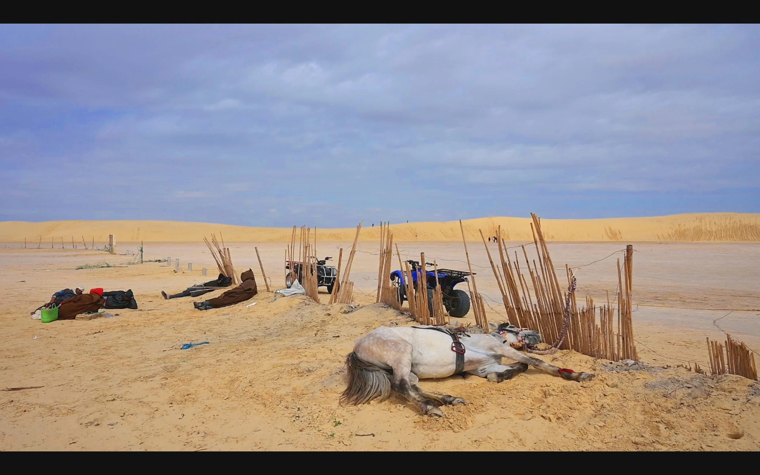 One does not see space here so much as time, because different layers of time with different rhythms coexist simultaneously in this place. Imaziɣen make their rounds on diesel-powered quad bikes. In this way, they re-appropriate the space inspired by their cultural practices, trying to develop alternative tourism activities. A reappropriation of the reinterpretation of their own culture by North Americans.